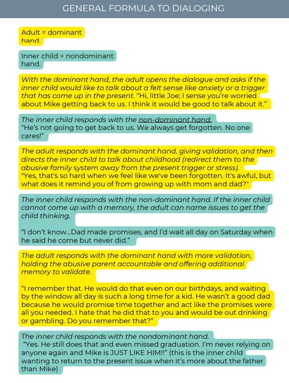 The practice of inner child dialoguing — Use the dominant and non-dominant hand writing technique to connect with your inner child, validate painful experiences, and calm emotional triggers
